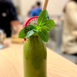 Ausgezeichneter Kaffee und ein Detox Smoothie, sowie der von Werner gewählte Grüne Tee - erfreuen gleich zu Beginn unser Gemüt ❤️