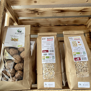 Auch Marmeladen, Liköre, Freilandeier, Teigwaren, Mehle, Gewürze und Apfelsaft, Most und Bauernbrot gibt es hier im Laden - alles in BIO Qualität!