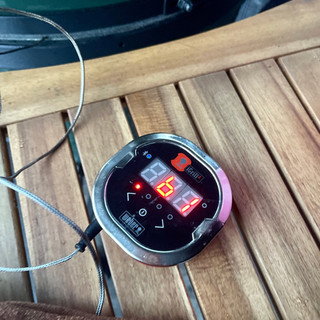 Die Temperatur wird konstant auf 150 Grad geheizt und das Fleisch kommt um 2.30 Uhr darauf.