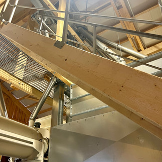 Auf rund 40 ha wird so einiges an Getreide (Körner) angebaut. Durch das gut aufgebaute Netzwerk und die Kooperation mit ca. 60 persönlich bekannten Bauern werden in der heurigen Saison 2023 ca. 100 ha Leinsamen angebaut und geerntet. Wissenswert dabei ist, dass der Standplatz vom Lein sich jährlich wechselt, denn dieser darf nur alle fünf Jahre am gleichen Acker angebaut werden. Während der Faserlein (Flachs) für Webereien geeignet ist, werden mittels schwieriger Ernte die Körner hier am Hof zu Öl gepresst, oder zu Leinmehl verarbeitet. Günther, der seinen früheren Job in der Software Branche gegen den elterlichen Bauernhof getauscht hat, betreibt die Entwicklungen hier am Hof mit Judith, (ebenfalls Quereinsteigerin aus der Marketingbranche) sehr überlegt und bedacht. Beide stellen die Qualität ihrer erzeugten Produkte auf höchste Ebene. Ich erlebe hier heute eine absolut professionelle, beeindruckende Führung, die bei der erst im Vorjahr in Betrieb genommenen, neuen Aufbereitungsanlage startet.