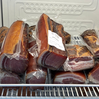 Der Speck sieht super gut aus, nehm ich mit, genauso wie die Hauswürste und Knacker, die übrigens mit Spagat gebunden sind 🔝