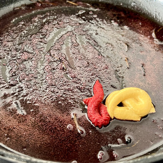 In einer Pfanne erwärme ich parallel die Butter und lasse sie leicht braun werden. Dann gebe ich die Salbei-Blätter dazu und mische zuletzt die Gnocchi unter.