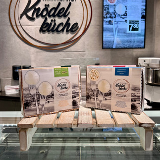 Diese Mehlspeisen irgendwo im Handel zu entdecken, ist eine Seltenheit und bringt mich gleich zu Beginn zum ersten Mal zum Staunen. Direkt gegenüber staune ich dann zum zweiten Mal, bei der haus-eigenen Innviertler-Knödelküche.