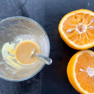 Während das Gebäck nun auskühlt, bereite ich das Orangen-Spargel-Tatar vor.