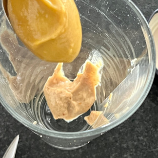 Wie ich das mache: Die Hefe bröckle ich in warmes Wasser und rühre sie darin auf.