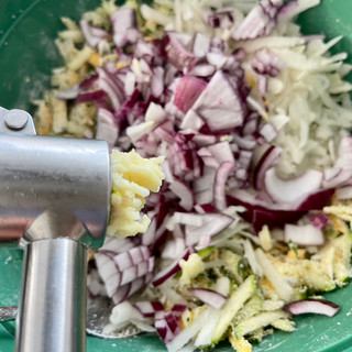 Den Salat mische ich gut durch und stelle diesen zur Seite und bereite die Laibchen zu.